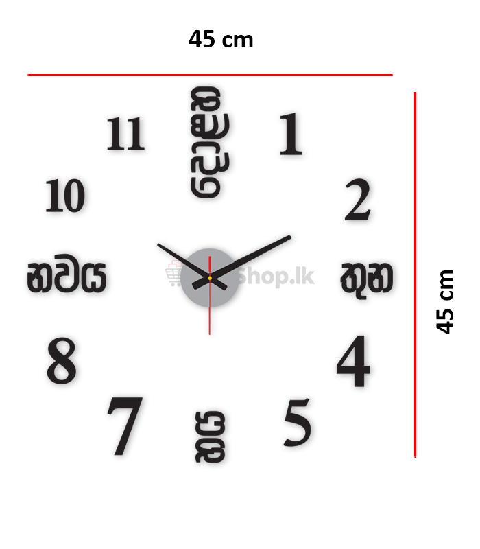 45×45 cm Sinhala 3D Wall Clock 06 Months Warranty