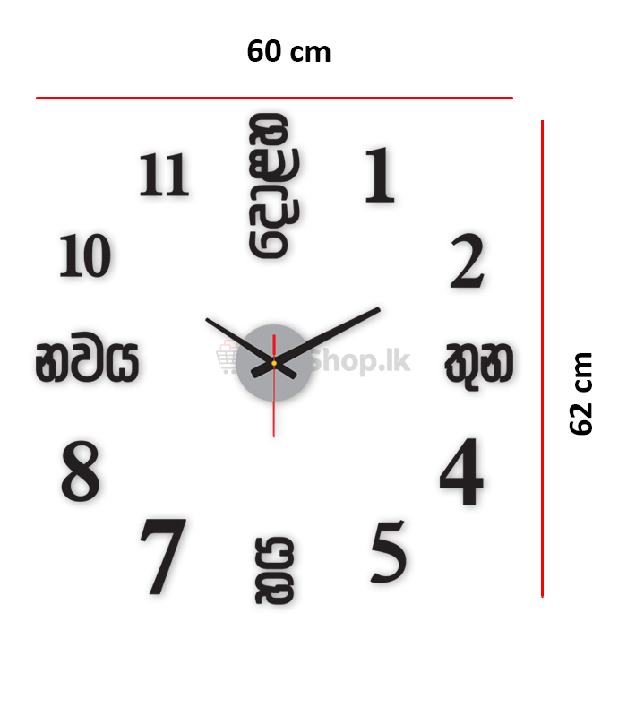 60×62 cm Sinhala 3D Wall Clock 12 Months Warranty